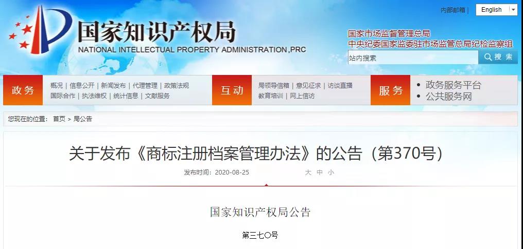 《商標注冊檔案管理辦法》發(fā)布!
