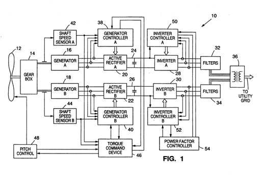 039專利于1992年1月獲得授權(quán),名稱為:“變速風(fēng)力渦輪機(jī)(Variable Speed Wind Turbine)”,是風(fēng)力渦輪機(jī)變速技術(shù)的開(kāi)創(chuàng)性專利。該專利使得渦輪機(jī)能夠?qū)⒉煌俣鹊娘L(fēng)轉(zhuǎn)換成適于輸送到公共電網(wǎng)的能量。相比以前的固定速度的系統(tǒng),該變速風(fēng)力渦輪機(jī)能夠從風(fēng)中提取更多的能量,并且能夠降低來(lái)自傳動(dòng)系統(tǒng)上的轉(zhuǎn)矩的壓力,以延長(zhǎng)渦輪機(jī)的壽命。