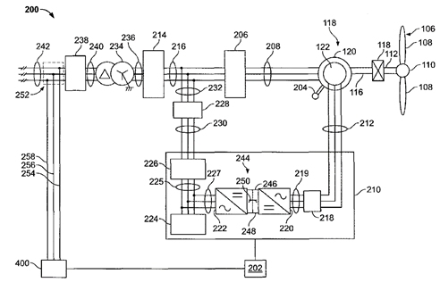985專利于2005年7月26日獲得授權(quán),名稱為:“低壓穿越風(fēng)力渦輪發(fā)電機(jī)(Low Voltage Ride Through for Wind Turbine Generators)”。該專利技術(shù)使得與配電網(wǎng)連接的風(fēng)力渦輪發(fā)電機(jī)具有低電壓穿越能力,從而在劇烈的電壓波動(dòng)期間保持與電網(wǎng)同步,保護(hù)電力變換器和發(fā)電機(jī)免受損害……