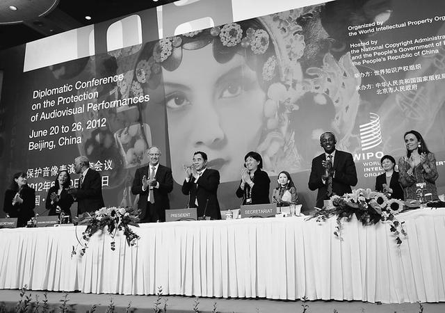 《北京條約》的誕生,標(biāo)志著談判了近20年的視聽表演者版權(quán)保護(hù)的國際新條約終于修成正果。華東政法大學(xué)教授王遷說:“世界知識(shí)產(chǎn)權(quán)組織是從1994年開始討論表演者國際保護(hù)這個(gè)問題的?!倍@一條約的談判過程極為艱辛,從1994年展開討論開始,美國和歐共體兩大利益方即產(chǎn)生了嚴(yán)重分歧,并導(dǎo)致世界知識(shí)產(chǎn)權(quán)組織于1996年和2000年召開的兩次外交會(huì)議均未能實(shí)現(xiàn)充分保護(hù)視聽表演者的目標(biāo)。從2001年到2011年,經(jīng)過多國艱苦卓絕的努力,世界知識(shí)產(chǎn)權(quán)組織成員國的溝通、協(xié)調(diào)和磋商,最終才就條約文本初步達(dá)成一致意見。2012年12月1日,經(jīng)世界知識(shí)產(chǎn)權(quán)組織成員國會(huì)議表決,一致同意外交會(huì)議在北京召開。