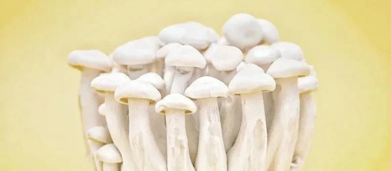 真姬菇的人工栽培首先始于1972年日本寶酒造株式會社,80年代真姬菇引入我國栽培,主要有淺灰色和淺白色兩個品系。其中灰色品系一般稱為蟹味菇,白色品系一般稱為白玉菇,除外觀顏色不同外,兩個品系口感和營養(yǎng)成分差別不大?!鞍子窆健蓖w潔白、脆嫩鮮滑、清甜可口,還具有獨特的香味!