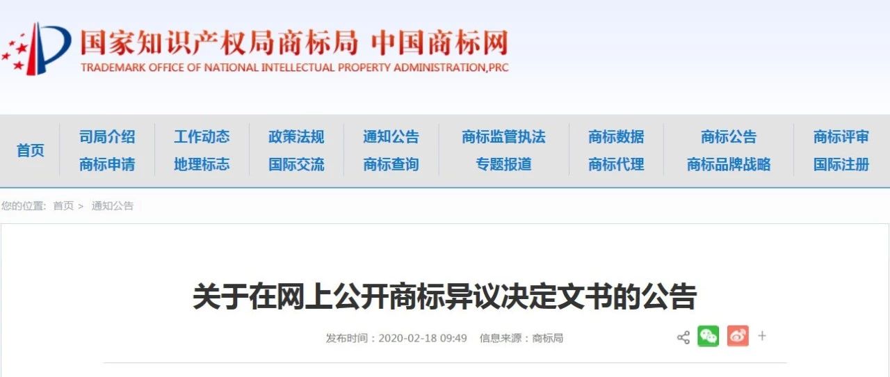 關(guān)注!國(guó)知局商標(biāo)局發(fā)布關(guān)于在網(wǎng)上公開商標(biāo)異議決定文書的公告