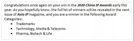 2020年度 中國區(qū)知識(shí)產(chǎn)權(quán)事務(wù)所獎(jiǎng)項(xiàng)